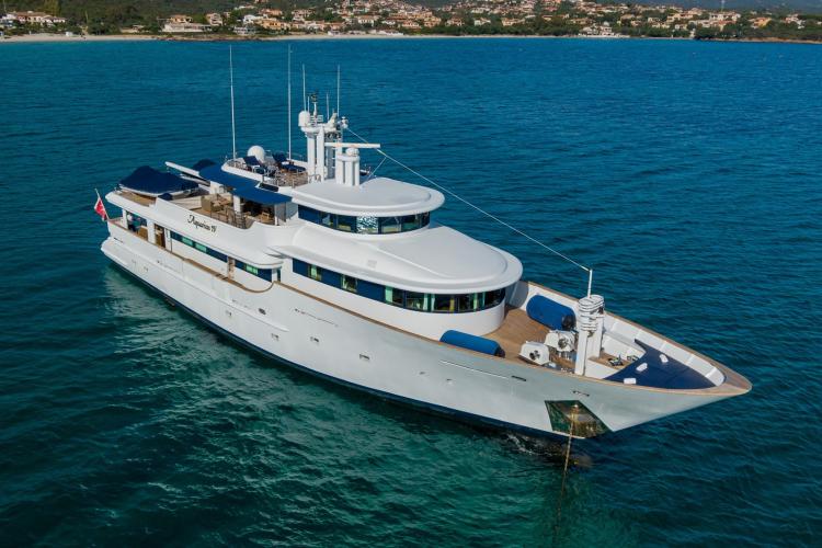 Une navette au charme énorme, prête à vous offrir des moments uniques et inoubliables.Aménagement intérieur :Cabine principale avec lit double et salle de bain sur le pont principal - Cabine VIP avec lit double et salle de bain - Cabine invités avec deux lits plats et salle de bain - Cabine invités avec deux lits plats et salle de bain - Cabine invités avec deux lits superposés et salle de bain.Équipage de 6 personnes.Électronique:GPS/Traceur - VHF - pilote automatique - échosondeur - radar.Équipement:Climatisation - passerelle électro-hydraulique - Sac 5,20 m. annexe - Williams jet - jet ski Sea Doo 900 HO - stabilisateurs Siemens zerospeed - propulseur d’étrave - n. 2 générateurs Caterpillar de 60 kW - générateur Northern Lights 24 kW.(plus 5% de frais d’agence)Equipement électronique de navigation:Indicateur d'angle de barre, Antenne radar, Compteur de chaîne, DSC VHF.Equipement de pont:Alarme moteur, Alarme de pompe de cale, Eau sous pression, Passavant en teck, Douche de cockpit, Double barre à roue, Propulseur d'étrave (Hysy), Bossoirs pour annexe, Extincteur(s) fixe(s), Passerelle, Plateforme arrière, Porte latérale, Cockpit en teck, Prise de quai, Connexion eau sous pression à quai, Guindeau électrique, Echelle de coupée, Echelle de bain, Stabilisateurs (Siemens), table de cockpit, Annexe, Corne, Winch électrique arrière.Equipement intérieur:Ballon d'eau chaude, Coffre-fort, Air Conditionné, Dessalinisateur, Toilettes électriques.Divers:Haut-parleurs, Antenne satellite TV, Décodeur satellite, TNT, Home cinéma, Radio AM/FM, Hi-Fi.Equipement de confort:Cuisine, Cuisinière, Réfrigérateur extérieur, Machine à glaçons, Lave-vaisselle, Lave-linge.Sellerie et tauds:Sellerie complète.